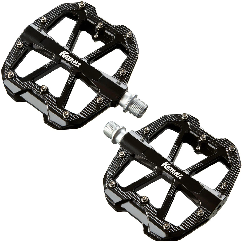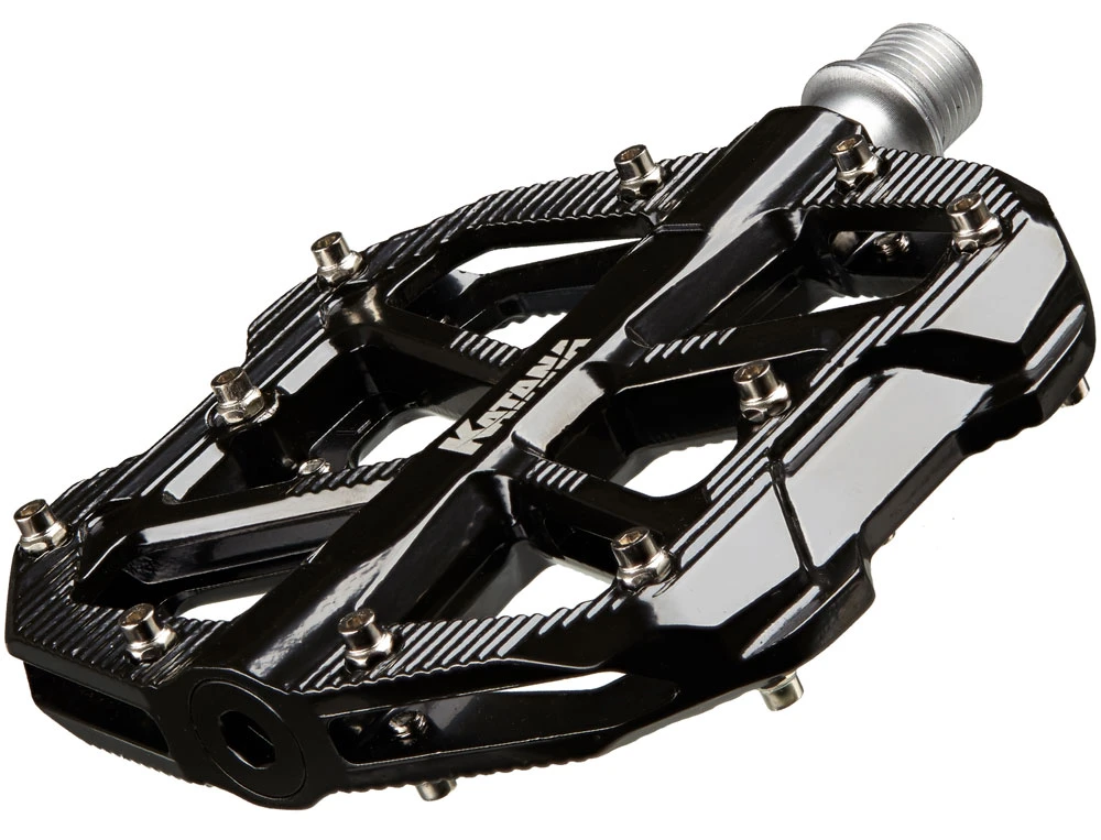 Les pédales plates Katana Blade sont composées d’un corps en aluminium robuste et sont équipées chacune de dix pins Evo pour une adhérence nécessaire sur tous les trails. Le corps de pédale en aluminium et les axes usinés CNC, associés à des roulements à billes de haute qualité, assurent une longue durée de vie dans tous les domaines d’utilisation, même dans les conditions les plus difficiles. Blade est synonyme de plat, de robuste et de rapide !