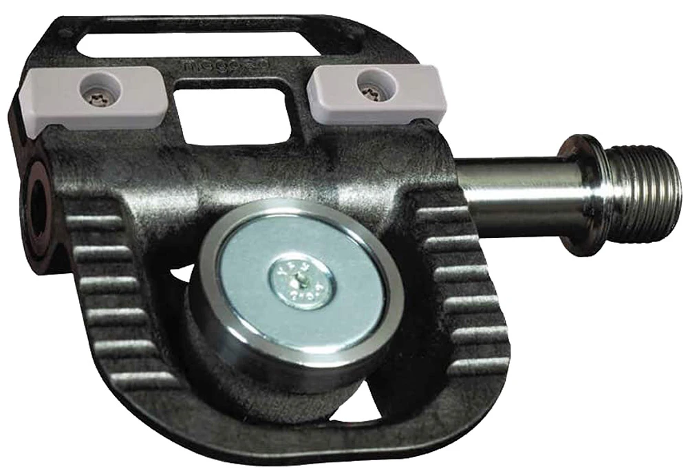 - Force de traction : selon l’intensité magnétique choisie, la chaussure est maintenue magnétiquement sur la pédale par une force de traction pouvant atteindre 15 kg. La force de traction agit surtout verticalement et un détachement latéral de la pédale est possible sans résistance perceptible. Mais un détachement rapide et simple dans des situations critiques, directement vers le haut, ne pose pas non plus de problème.