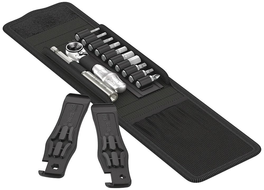 Les spécialistes du cycle et cyclistes passionnés adorent bricoler les vélos. Wera propose un assortiment d’outils « Bicycle Set 1 » qui est particulièrement compact et rassemble les pricipaux outils nécessaires en une trousse textile.